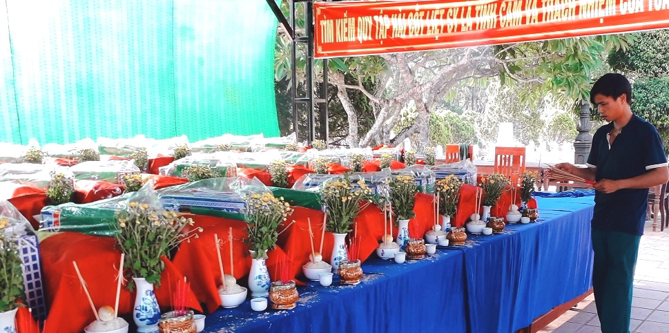 Từ chiều 25–9, nhiều người dân các tỉnh Hà Tĩnh, Nghệ An... đã tìm vào NTLS H.Gio Linh (Quảng Trị) thăm và dâng hương cho các liệt sĩ vừa được quy tập về đây cùng niềm hy vọng trong số những anh hùng được tìm thấy lần này có con em họ. Trong nhiều thông tin gửi về Quảng Trị cho thấy có khả năng sớm xác định được đơn vị, tên tuổi của nhiều liệt sĩ trong số 37 hài cốt liệt sĩ vừa được cất bốc tại rừng cao su Nông trường Dốc Miếu thuộc thôn Xuân Mai, xã Gio Bình (H.Gio Linh) khiến những người lính Đội quy tập 584 (BCHQS tỉnh) không kìm được xúc động. Cuộc tìm kiếm của Đội 584 trên vùng đất bazan Xuân Mai bắt đầu từ ngày 11–9–2018 sau khi có thông tin về hài cốt liệt sĩ. Sau những nỗ lực khảo sát, đội đã phát hiện cất bốc được 2 hài cốt bộ đội giải phóng được chôn cất trong tăng võng. Khu vực tìm kiếm gần Căn cứ quân sự Dốc Miếu, cứ điểm quan trọng nhất của phòng tuyến McNamara do Mỹ thiết lập hơn 50 năm trước hòng chặn đứng mọi nguồn tiếp tế từ miền Bắc vào miền Nam của quân Giải phóng. Qua nghiên cứu và tổng hợp các thông tin cùng kinh nghiệm bao năm đi tìm đồng đội, Đội 584 quyết định mở rộng khu vực quy tập. Gặp thời tiết không thuận, sáng nắng cháy da, chiều mưa trút nước, lực lượng quy tập không còn cách nào là phải chạy đua với mưa nắng. Máy móc phương tiện hiện đại được huy động, hỗ trợ nhằm đẩy nhanh quá trình tìm kiếm. 2 tuần đóng lều trại tại Xuân Mai, lực lượng quy tập đã phát hiện nhiều hài cốt liệt sĩ ở 2 khu vực chỉ cách nhau vài trăm mét. Khi phát hiện hài cốt các anh được gói chặt trong tăng võng, ai nấy đều rưng rưng xúc động. Trong thời khắc sinh tử, trong mất mát và hy sinh, những người lính đang đối mặt với bom đạn trên phòng tuyến tử thần do Mỹ thiết lập vẫn cố đưa những đồng đội hy sinh về nằm gần nhau, chôn cất cẩn thận...