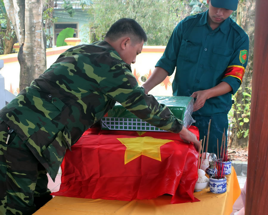 Sáng sớm 17-1, trước khi trở lại hiện trường khu vực tìm kiếm hài cốt liệt sĩ bên sông Thạch Hãn thuộc thôn Tân Lệ, xã Hải Lệ, (TX Quảng Trị, Quảng Trị), Thượng tá Trần Quang Lục-Chính trị viên Đội quy tập 584, BCHQS tỉnh Quảng Trị cùng đồng đội đều có mặt tại Nhà bia tưởng niệm Anh hùng liệt sĩ xã Hải Lệ để hương khói cho các liệt sĩ và cầu mong sớm tìm được hết những đồng đội đã ngã xuống mà bao năm chưa được tìm thấy hài cốt.