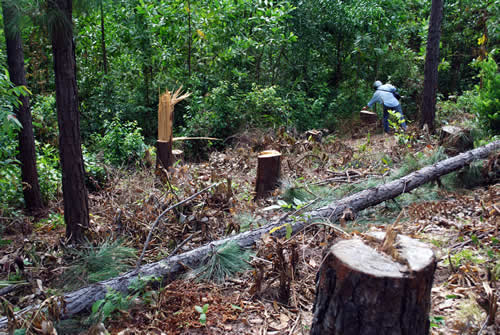 Hàng trăm cây thông Caribe đã bị đốn hạ ngay sau khi Đoàn kiểm tra liên ngành ngừng hoạt động. |