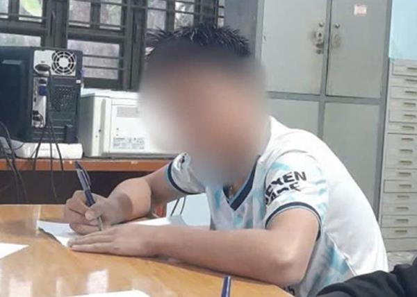 Một “cát tặc” bị Công an xã Quảng Ninh bắt giữ.