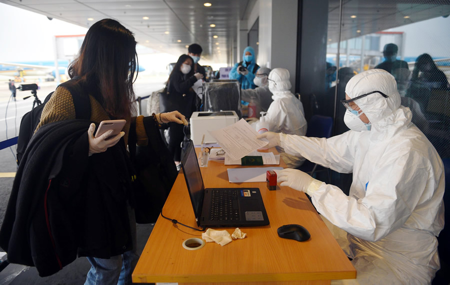 Tất cả hành khách khi xuống máy bay phải tiến hành khai báo y tế bắt buộc. Trung tâm kiểm dịch y tế và các đơn vị liên quan tiến hành kiểm tra sàng lọc để phát hiện các trường hợp nghi ngờ qua máy đo thân nhiệt từ xa; phun khử trùng hành lý xách tay của hành khách. Hành khách được làm thủ tục nhập cảnh, kiểm tra hải quan với hành lý xách tay và hành lý ký gửi, sau đó bàn giao cho Bộ Chỉ huy Quân sự tỉnh Quảng Ninh đưa về các điểm cách ly theo dõi sức khỏe trong 14 ngày theo quy định.