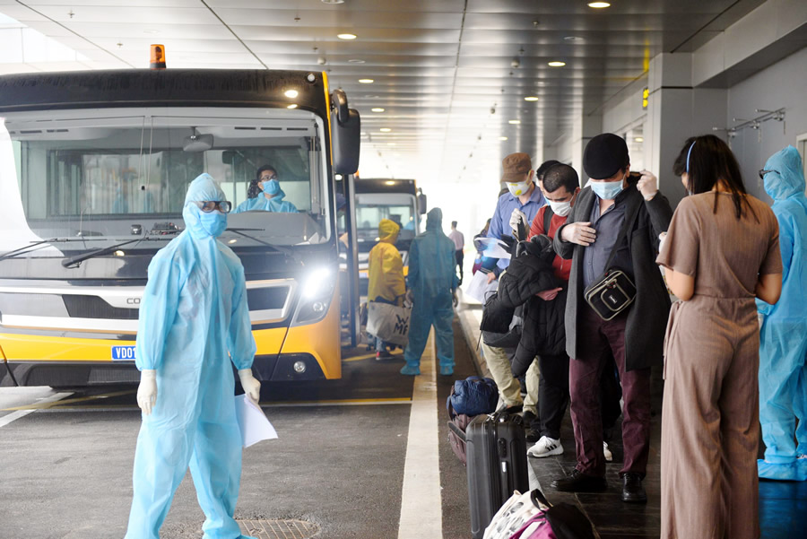 Quy trình đón khách từ vùng dịch về được tuân thủ nghiêm ngặt như sau: Khi hành khách hạ cánh xuống Sân bay quốc tế Vân Đồn, các tàu bay đậu ở bãi đỗ xa. Hành khách làm thủ tục nhập cảnh và kiểm tra hải quan tại khu vực phía ngoài nhà ga, đảm bảo không ảnh hưởng tới hoạt động chung của sân bay.