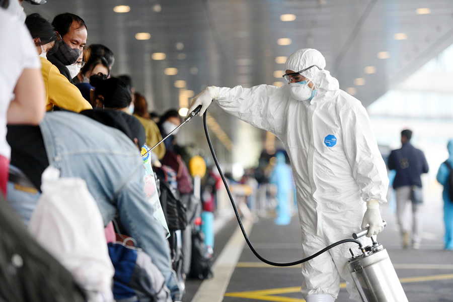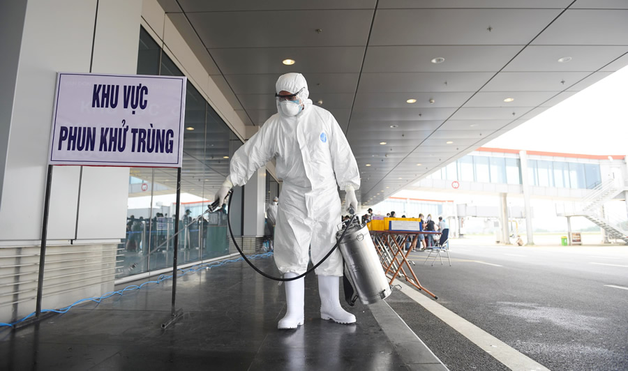 Tất cả nhân sự tại sân bay Vân Đồn tiếp xúc trực tiếp với hành khách đều được trang bị đồ bảo hộ y tế: trùm kín bằng quần áo bảo hộ, đeo kính, khẩu trang chuyên dụng, mang ủng…, được tập huấn các thao tác mặc và cởi đồ bảo hộ để tránh nguy cơ lây nhiễm virus vào cơ thể. Sau khi đón hành khách xong, toàn bộ khu vực làm thủ tục, luồng di chuyển của hành khách và các thiết bị tại sân bay được phun xịt khử trùng, phòng lây nhiễm dịch bệnh.