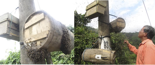Có kinh nghiệm lâu năm trong nghề săn ong rừng, ông Phan Thanh Toàn (60 tuổi, trú xã Phú Gia), cho biết, có nhiều cách để bắt ong rừng đưa về nuôi, nhưng 2 cách cơ bản nhất mà thợ săn ở H. Hương Khê thường dùng đó treo chang lên cột điện (loại cột điện hình trụ đứng, rỗng ở giữa, có nhiều lỗ xung quanh) hoặc một nơi nào đó có ánh nắng ấm áp để chờ ong soi bay đến "thăm" chang. "Khi con ong soi chui vào chang mà "ưng cái bụng" thì một lúc sau, con ong này sẽ "thông báo" cho nhóm ong soi hàng trăm con khác đến cùng "thăm" chang. Nếu nhóm ong soi mà "ưng cái bụng" thì y như rằng, khoảng 15 phút sau, ong soi sẽ "đưa đường" cho cả tổ ong bay về chang. Thế là xong, việc còn lại là người thợ chỉ đưa chang chứa đầy ong về nhà nuôi lấy mật" - ông Toàn nói.