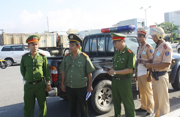 CAQ Cẩm Lệ tổ chức lực lượng chốt chặn tại khu vực đầu cầu Tiên Sơn. |