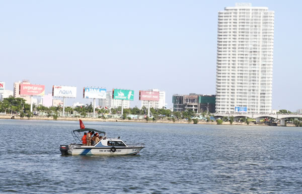 CSGT đường thủy triển khai lực lượng tuần tra trên sông Hàn. |