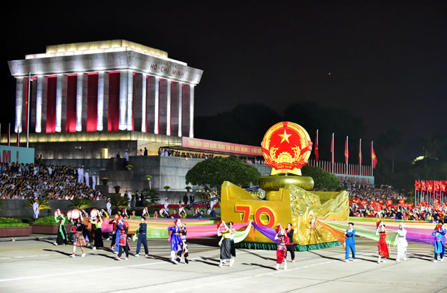 (Cadn.com.vn) - Chuẩn bị cho Lễ kỷ niệm 70 năm Cách mạng tháng Tám và Quốc khánh 2-9, tối 29-8, tại Quảng trường Ba Đình- Thủ đô Hà Nội, Ban Tổ chức cấp Quốc gia kỷ niệm các ngày lễ lớn trong hai năm 2014 - 2015 đã tổ chức lễ tổng duyệt chương trình mít-tinh, diễu binh, diễu hành kỷ niệm 70 năm Cách mạng tháng Tám và Quốc khánh 2-9 với sự tham gia của 30.000 người.