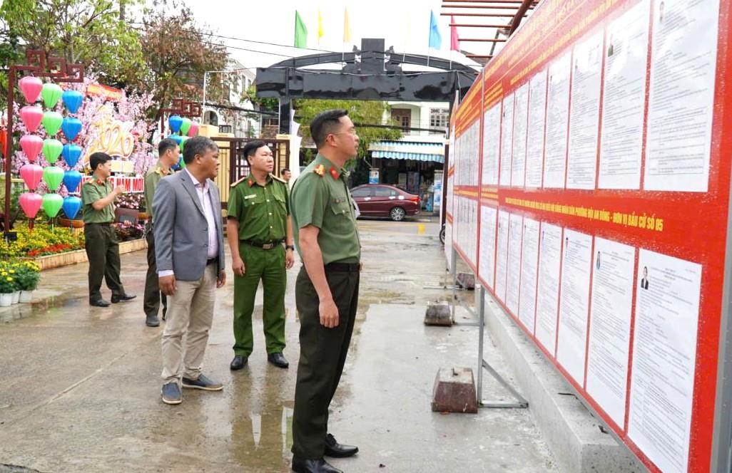 Tại phường Hội An Đông, chiều 6-3, Đại tá Nguyễn Đại Đồng-Phó Giám đốc Công an thành phố đã trực tiếp kiểm tra điểm bầu cử tại Tổ dân phố Trường Lệ và cơ quan thường trực Ủy ban bầu cử phường. Công an phường đã chủ động tham mưu xây dựng kế hoạch bảo vệ sát với tình hình địa bàn, phân công cán bộ phụ trách từng khu vực bỏ phiếu, phối hợp chặt chẽ với dân quân và Tổ bảo vệ ANTT cơ sở để tuần tra khép kín 24/24 giờ. Trước đó, Đại tá Nguyễn Văn Tăng và Đại tá Nguyễn Hà Lai cũng đã kiểm tra công tác tại xã Tam Mỹ và phường Liên Chiểu, yêu cầu lực lượng chức năng tuyệt đối không chủ quan, lơ là trước các tình huống phát sinh.