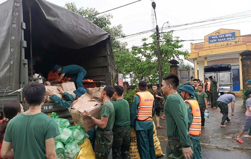Tại vùng hạ du, sáng 30-10, CBCS Lữ đoàn Thông tin 575, Quân khu 5 đã tổ chức nấu hơn 200 suất cơm cùng các nhu yếu phẩm thiết yếu. Tổ công tác đã cơ động đến tâm lũ xã Hòa Tiến, TP Đà Nẵng – nơi chịu nhiều thiệt hại nặng nề trong đợt mưa bão vừa qua, để trực tiếp hỗ trợ bà con đang bị cô lập do nước lũ. Nhận những suất cơm nóng giữa thời tiết mưa lạnh, ông Trần Xuân Nhàn - người dân thôn Cẩm Nê, xã Hòa Tiến xúc động cho biết: “Trong những ngày bị nước lũ cô lập, nhận được bữa cơm ấm lòng của các chú bộ đội, chúng tôi thật sự cảm kích thêm vững tin rằng người dân chúng tôi không bao giờ bị bỏ lại phía sau”.
