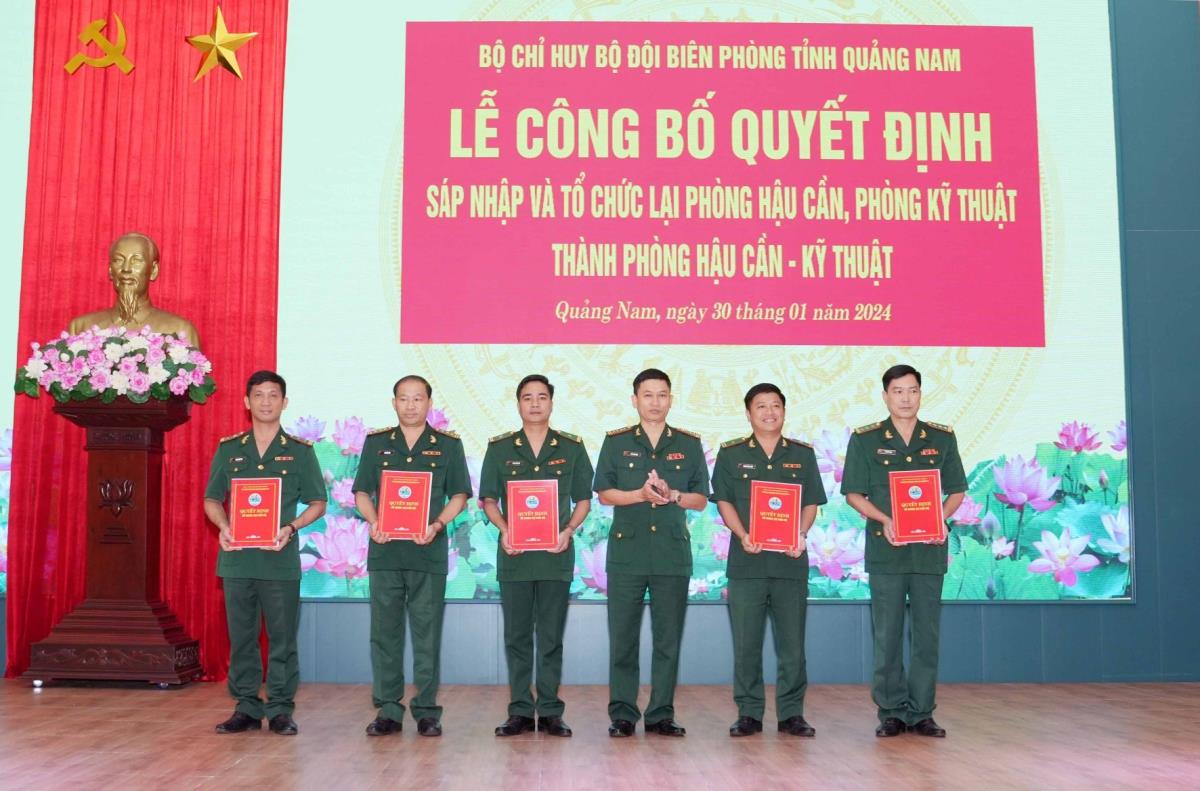 Tại buổi lễ, Bộ Chỉ huy BĐBP tỉnh công bố Quyết định số 6511 ngày 12-12-2023 của Bộ trưởng Bộ Quốc phòng về việc sáp nhập và tổ chức lại Phòng Hậu cần, Phòng Kỹ thuật thành Phòng Hậu cần - kỹ thuật trong các đơn vị thuộc BĐBP; quyết định của Tổng Tham mưu trưởng về việc ban hành Biểu tổ chức, biên chế Phòng Hậu cần - kỹ thuật thuộc BĐBP tỉnh; quyết định điều động, bổ nhiệm đối với cán bộ, quân nhân chuyên nghiệp thuộc Phòng Hậu cần - kỹ thuật.
