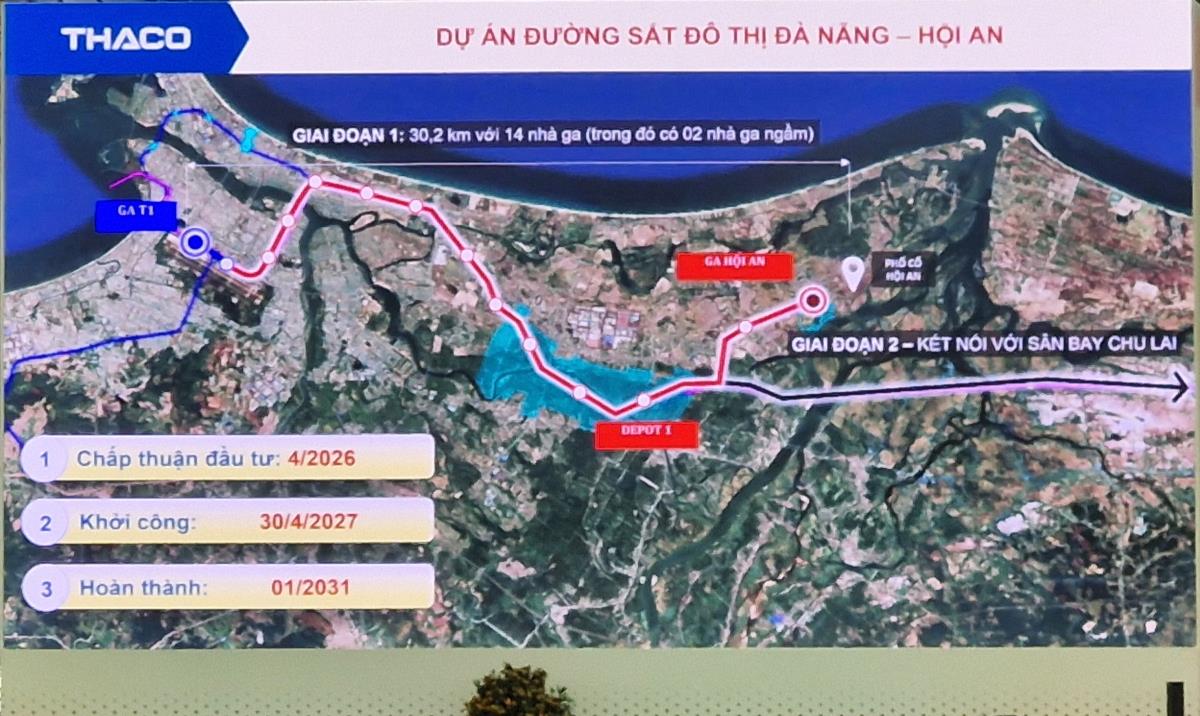 - Tuyến đường sắt đô thị Đà Nẵng - Hội An: Hoàn thành thủ tục pháp lý để được chấp thuận chủ trương đầu tư vào tháng 4-2026, khởi công vào ngày 30-4-2027 và hoàn thành trong tháng 1-2031.