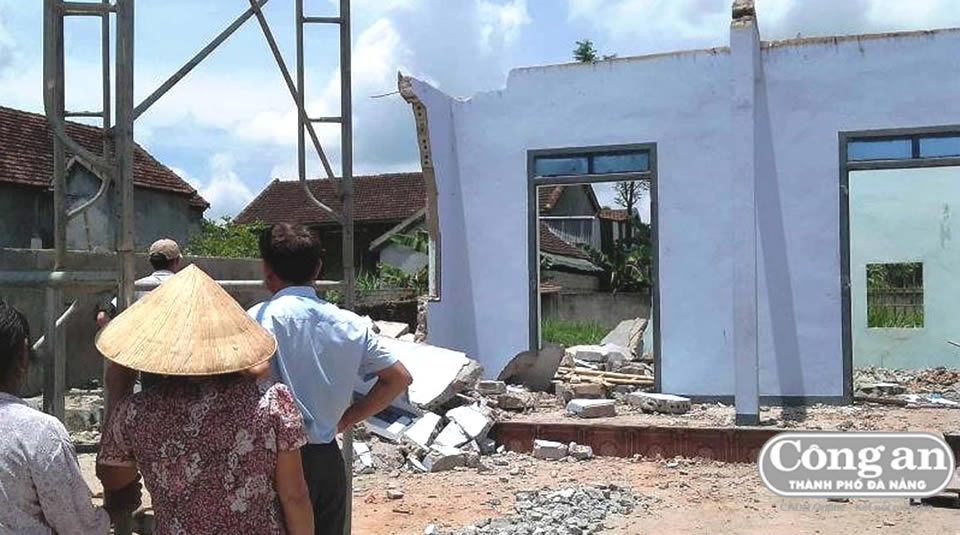 Hiện trường vụ sập tường. |