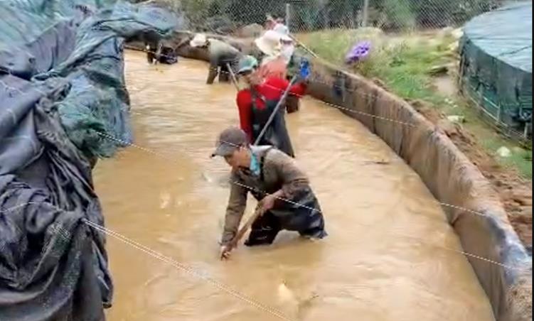 Sạt lở đất khiến 70 tấn cá tầm bị thiệt hại nặng