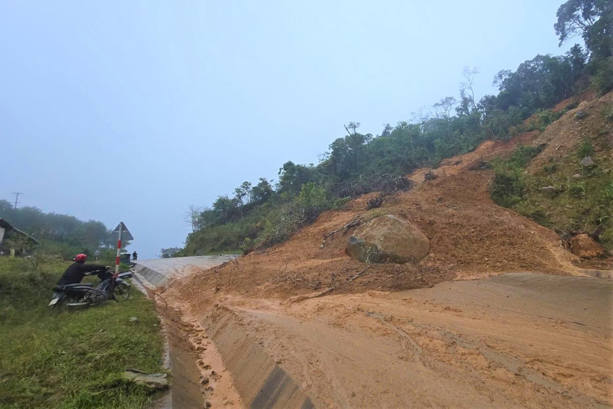 Công an xã cùng các lực lượng chức năng khuyến cáo và hướng dẫn người dân hạn chế đi lại qua vùng sạt lở để tránh nguy cơ sụt trượt, đá rơi từ ta luy dương xuống đường. Các phương tiện lưu thông tuân thủ hướng dẫn của lực lượng chức năng để đảm bảo an toàn.
