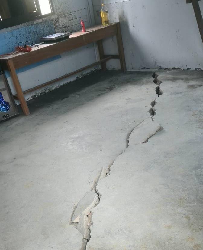 Các vết nứt nghiêm trọng tại Công an xã Hùng Sơn.