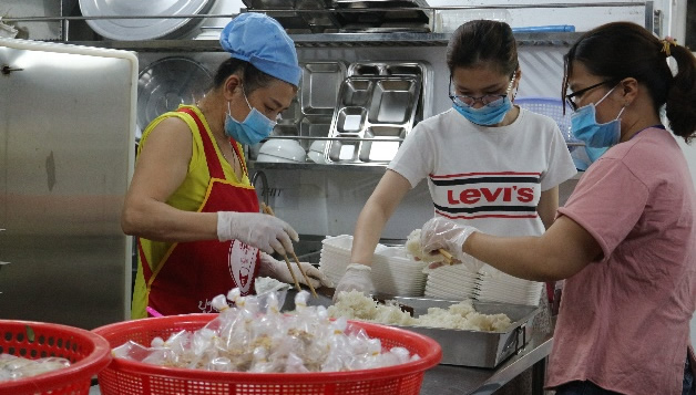 Nhân viên quán Yên Vui chuẩn bị suất ăn đến người khó khăn trong mùa dịch. |