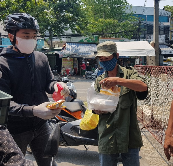 Mỗi xe chở cơm có 2 bạn TNV đi cùng đều có trang bị khẩu trang, kính bảo hộ trước mặt, bao tay... để đảm bảo phòng chống dịch. Đến gốc ngã tư, ngã ba nào có người lao công, xe ôm đang nghỉ mệt, họ ghé lại, trao tay hộp cơm cùng một bịch sữa khiến nhiều người xúc động. Tại điểm nhà Ga đường Hải Phòng, hơn chục chú xe ôm đang mong ngóng chờ khách, thấy các bạn TNV đến và trao tận tay những hộp cơm cho mình các chú đều không ngừng trao hai từ “Cảm ơn” đến các bạn TNV. Một cô đi đường xin chụp hình đưa lên facebook để nhiều người biết đến công việc thiện nguyện này mà ủng hộ đến quán. “Tôi thấy những hình ảnh này thật đẹp và ý nghĩa trong mùa dịch, nếu nhiều người biết đến thì các bạn sẽ có năng lượng giúp được nhiều người hơn nữa”, vị khách đi đường chia sẻ.