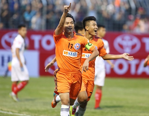 Vũ Phong ăn mừng bàn thắng cho SHB Đà Nẵng. |