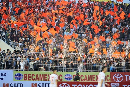 Không khí cuồng nhiệt trên khán đài sân Hòa Xuân. |