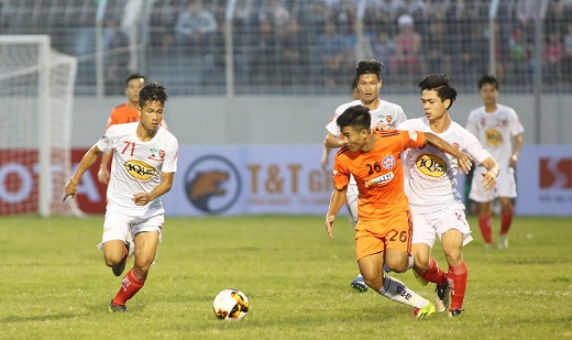 SHB Đà Nẵng (cam) đã chơi đầy quyết tâm. |