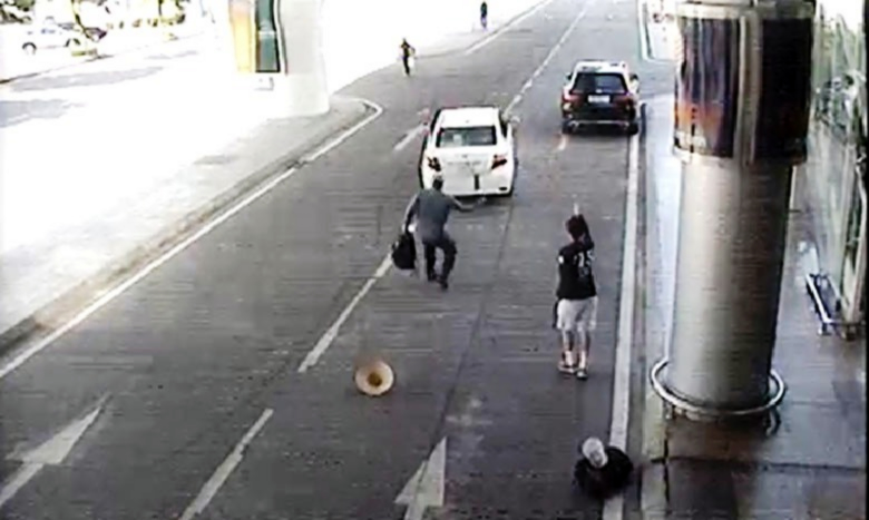 Hình ảnh lái xe “Grab dù” khi bị phát hiện đã bỏ chạy khiến hành khách phải đuổi theo đòi lại hành lý trên xe. |