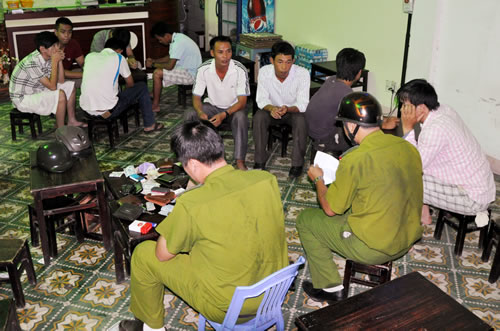 Nhiều SV đánh bài ăn tiền tại quán cà-phê bị lực lượng công an bắt giữ. |