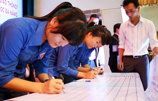 Đại diện HSSV 7 trường thành viên Đại học Đà Nẵng tham gia ký kết chấp hành Luật Giao thông. Để thể hiện vai trò của những trí thức trẻ trong góp phần đảm bảo TTATGT trên địa bàn thành phố, Ban Giám đốc, Ban Giám hiệu các trường thành viên; Ban Công tác HSSV, Đoàn TN, Hội SV cùng vào cuộc đồng bộ và tạo sự chỉ đạo quyết liệt từ trên xuống các Phòng Công tác HSSV, Đoàn TN, Hội SV ở đơn vị trực thuộc... luôn phối hợp chặt chẽ với các ngành, các đơn vị chức năng.