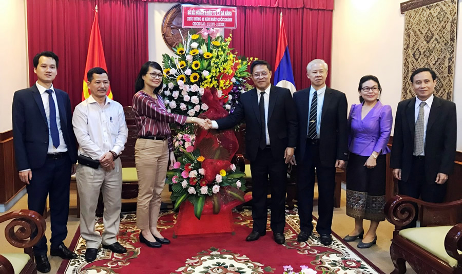 Nhân kỷ niệm 45 năm Quốc khánh nước CHDCND Lào (2-12-1975 - 2-12-2020) và Kỷ niệm 100 năm Ngày sinh Chủ tịch Cay-xỏn Phôm-vi-hản, Sở Kế hoạch và Đầu tư thành phố vừa đến thăm, chúc mừng Tổng Lãnh sự quán Lào tại Đà Nẵng. Thay mặt lãnh đạo Sở, bà Trần Thị Thanh Tâm - Giám đốc sở chúc Tổng Lãnh sự Viengxay Phommachanh cùng cán bộ, nhân viên Tổng Lãnh sự quán sức khỏe, hạnh phúc, cũng như gửi lời chúc mừng tốt đẹp nhất đến các đồng chí lãnh đạo và nhân dân các bộ tộc Lào nhân kỷ niệm 45 năm Quốc khánh nước CHDCND Lào cũng như những thành tựu kinh tế - xã hội mà Chính phủ và nhân dân Lào đã đạt được trong 45 năm qua.