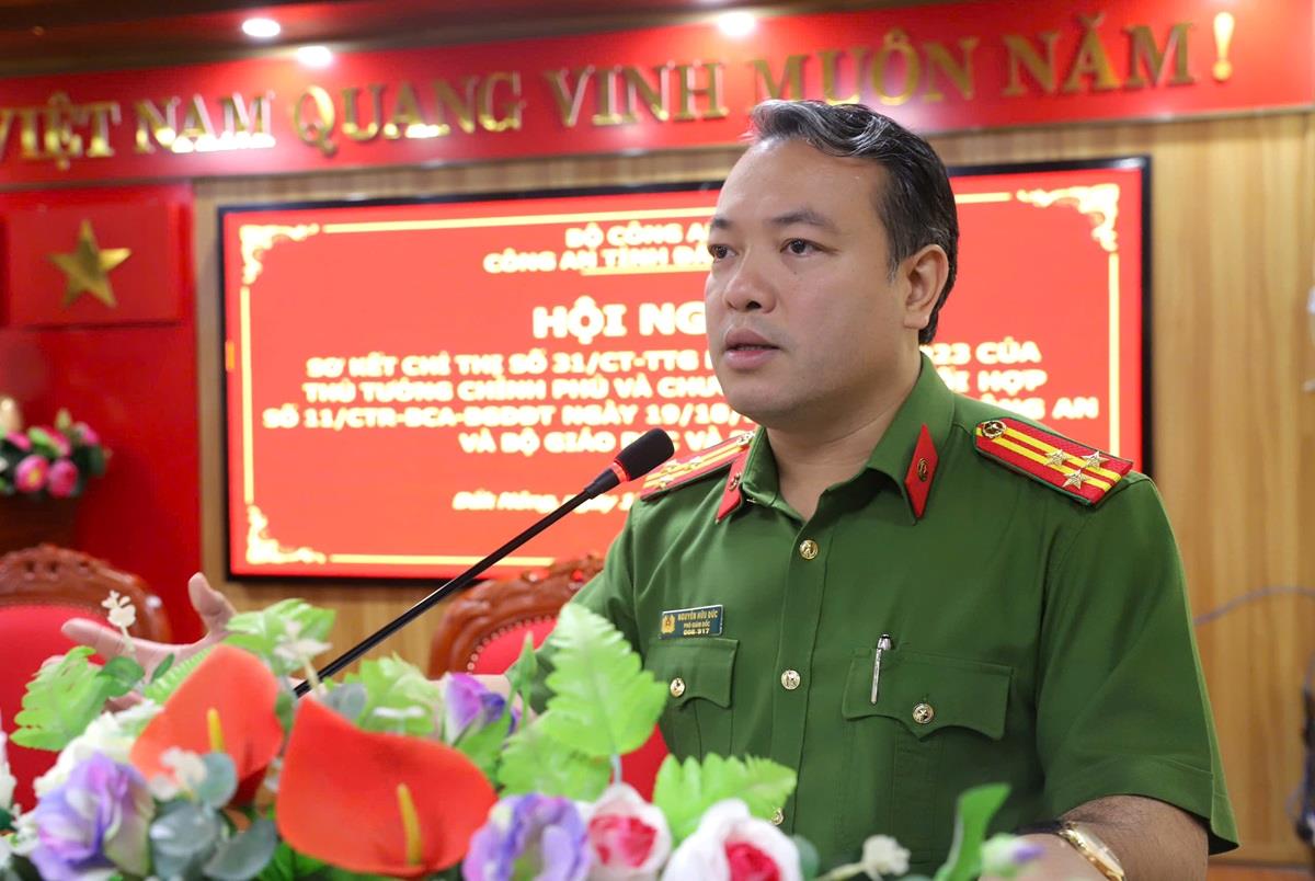 Thượng tá Nguyễn Hữu Đức, Phó Giám đốc Công an tỉnh và đồng chí Lê Bá Cường, Phó Giám đốc Sở GD-ĐT tỉnh đồng chủ trì hội nghị. Tham dự hội nghị có lãnh đạo các đơn vị chức năng thuộc 2 ngành. Hội nghị được trực tuyến tới Công an các huyện, thành phố với sự tham dự của lãnh đạo, chỉ huy và đại diện các Phòng Giáo dục, trường học trên địa bàn 8 huyện, thành phố.