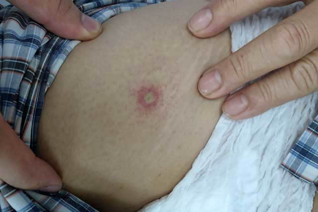 Vết ong đốt trên cơ thể bệnh nhân là độc tố khiến bệnh nhân rơi vào tình trạng phản vệ nguy kịch. |