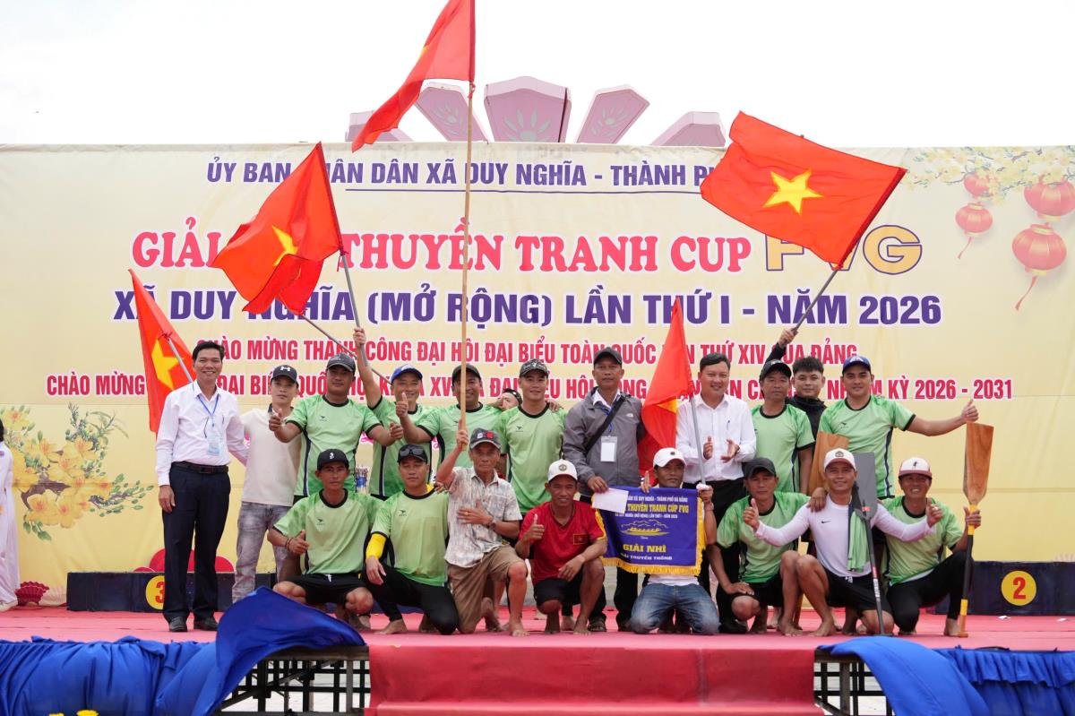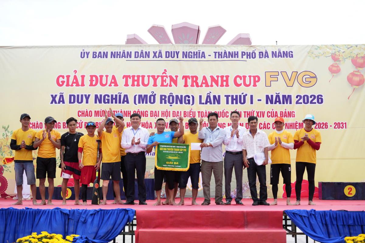 Trong không khí phấn khởi những ngày đầu xuân Bính Ngọ 2026, sáng 26-2 (Mùng 10 tháng Giêng Âm lịch), tại Bến du thuyền Khu đô thị du lịch Nam Hội An City, UBND xã Duy Nghĩa (TP Đà Nẵng) phối hợp cùng Tập đoàn FVG tổ chức khai mạc Giải Đua thuyền truyền thống xã Duy Nghĩa mở rộng lần thứ I - Cúp FVG năm 2026.