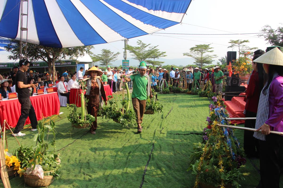 Các đội thi diễu hành quang gánh rau.