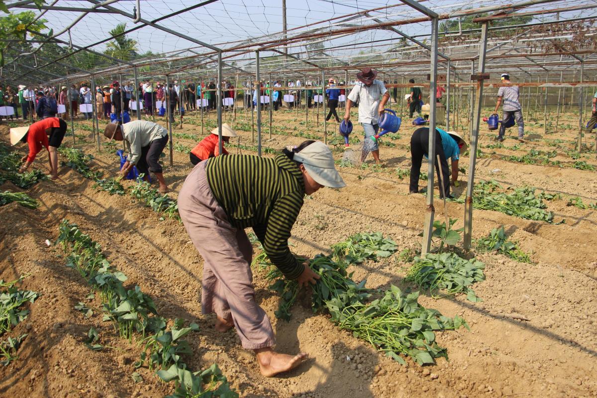 Các đội thi trồng rau.