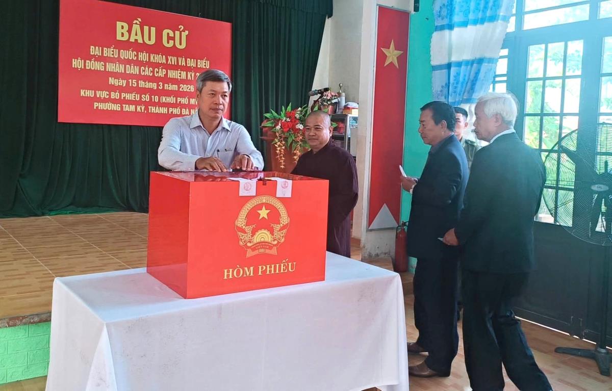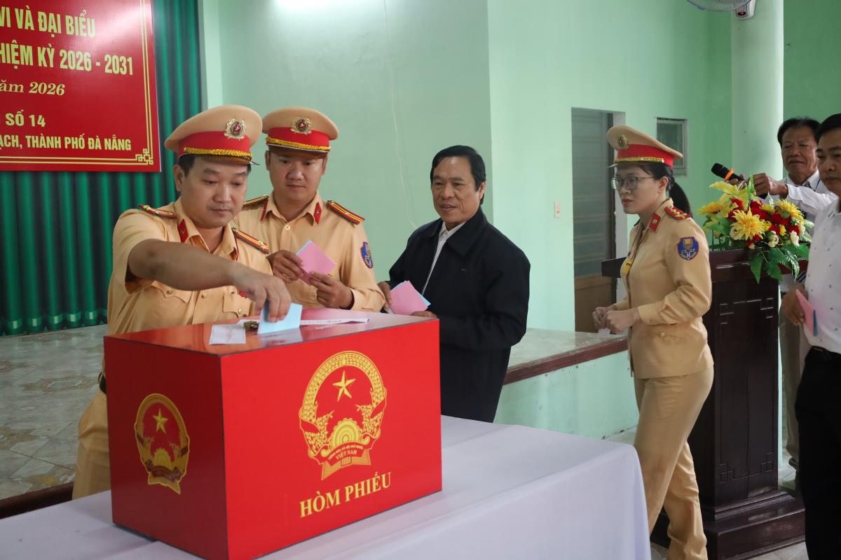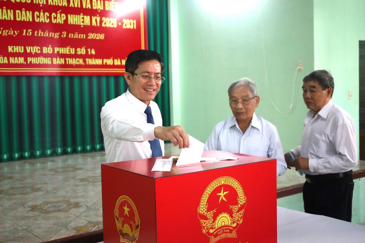 Tại khu vực bỏ phiếu số 14, phường Bàn Thạch (TP Đà Nẵng) có Ủy viên Ban Thường vụ Thành ủy, Phó Chủ tịch UBND TP Đà Nẵng Trần Nam Hưng dự lễ khai mạc và tham gia bỏ phiếu. Qua ghi nhận của phóng viên Chuyên đề Công an TP Đà Nẵng, dù 7 giờ sáng mới diễn ra lễ khai mạc, thế nhưng ngay từ 6 giờ sáng, nhiều người dân địa phương đã đến khu vực bỏ phiếu để thực hiện quyền công dân của mình. Cử tri Hồ Văn Dũng (62 tuổi) cho biết, qua những lá phiếu mình gửi gắm, ông kỳ vọng lựa chọn đúng những người đủ đức, đủ tài để đại diện cho nhân dân tham gia vào Quốc hội và HĐND các cấp, góp phần xây dựng quê hương, đất nước ngày càng giàu mạnh, vững tin bước vào kỷ nguyên mới.