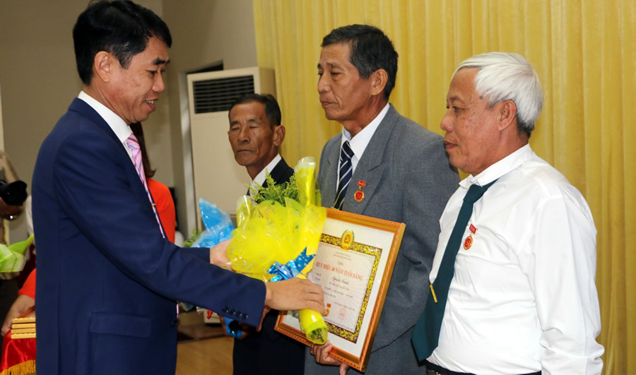 Ông Nguyễn Hoanh nhận huy hiệu 40 năm tuổi Đảng. |