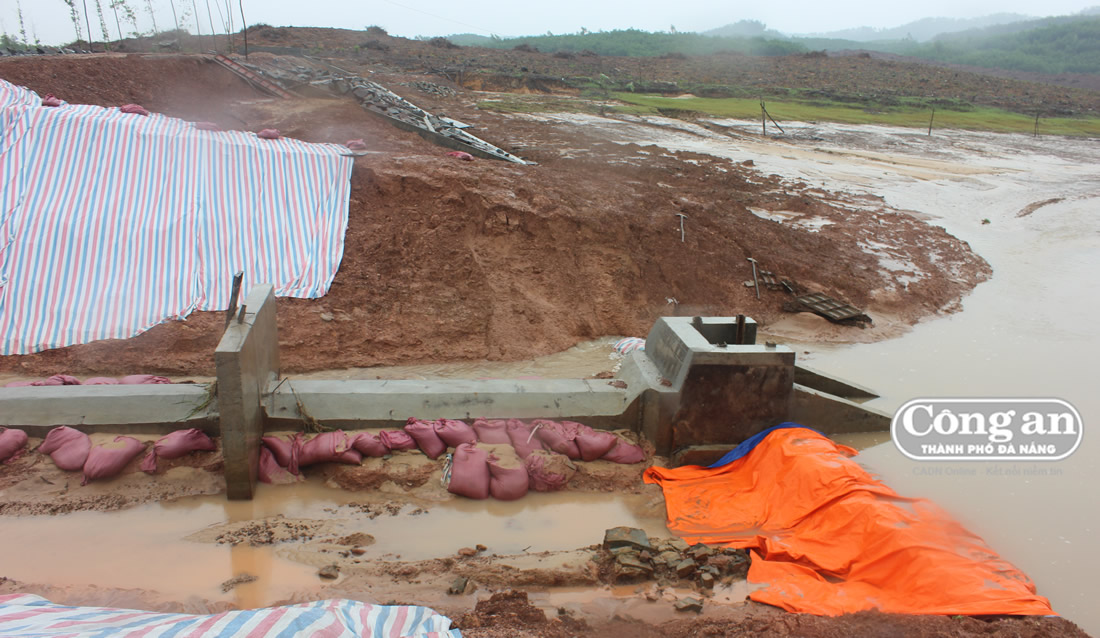 Sáng 13-10, P.V Báo Công an TP Đà Nẵng được người dân thôn Mỹ Sơn dẫn lên vị trí công trình bị sạt lở để ghi nhận thực tế. Theo quan sát của phóng viên, nước từ hồ Hóc Bầu vẫn chảy ra ngoài theo vết toác rộng khoảng 3m, sâu hơn 4m so với đỉnh thân đập.