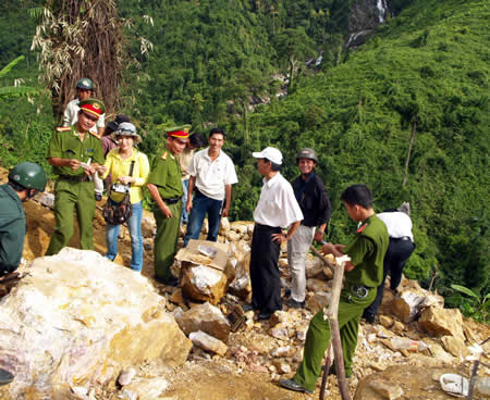 Đoàn công tác liên ngành kiểm tra mẫu đá tại hiện trường |