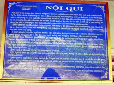 Bảng nội quy của “Trường ứng dụng năng lượng sinh học”. |