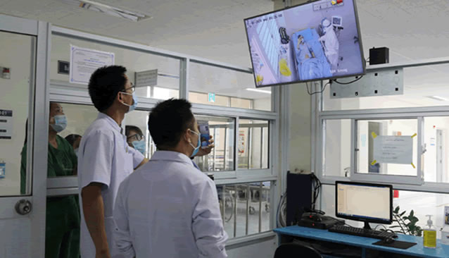 Bác sĩ đang hội chẩn cho "bệnh nhân 1405" qua hình ảnh trực tuyến. |