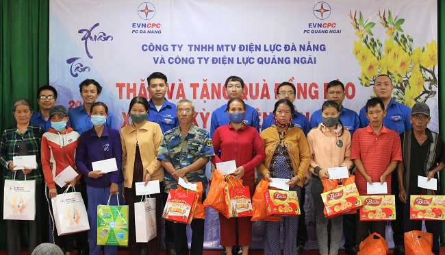 Đoàn Thanh niên PC Quảng Ngãi phối hợp Đoàn Thanh niên Công ty TNHH MTV Điện lực Đà Nẵng thăm và tặng cho bà con nghèo ở xã Tịnh Kỳ. |