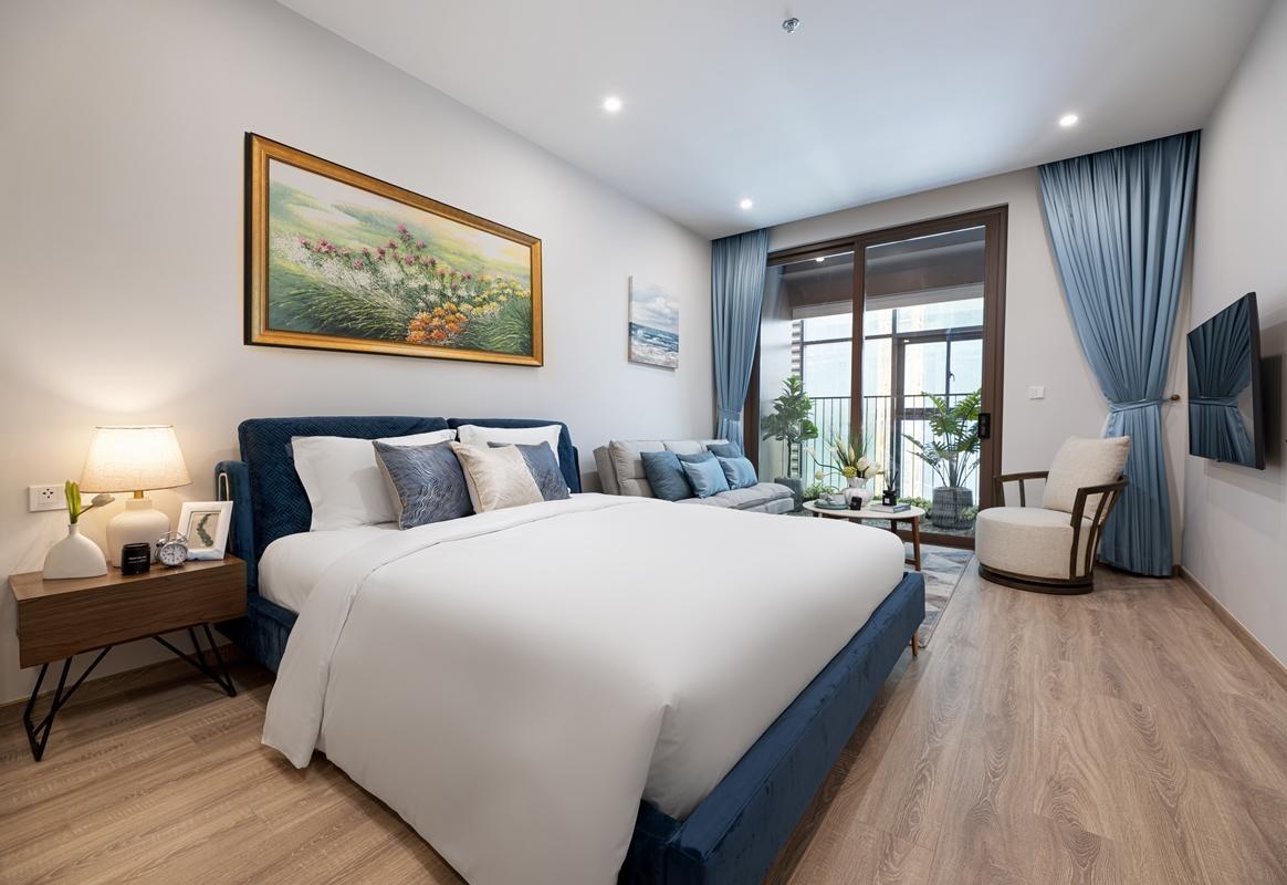 Toàn bộ căn hộ dự án sở hữu chiều cao lên đến 3,5m với tầm nhìn hướng biển Mỹ Khê, mang đến đặc quyền ngắm bình minh rạng ngời mỗi ngày và thành phố lung linh ánh đèn, rực rỡ sắc màu pháo hoa về đêm. Ngoài ra, các căn hộ sẽ được bàn giao hoàn thiện nội thất liền tường hiện đại theo tiêu chuẩn 5 sao giúp khách hàng dễ dàng đưa vào khai thác cho thuê lưu trú ngay khi nhận nhà hay dọn vali về ở nhanh chóng.