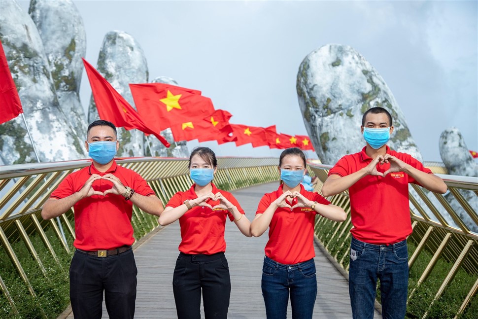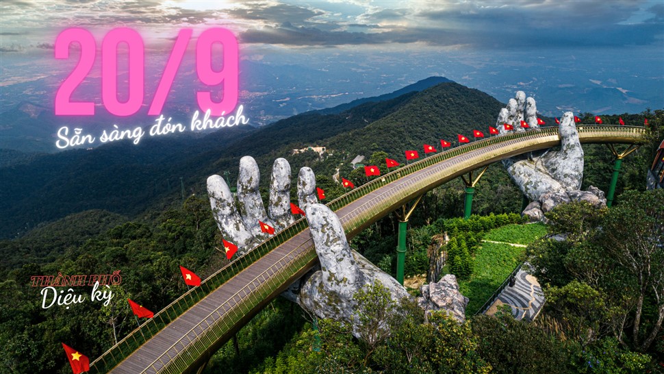 Đặc biệt, chào đón du khách trở lại, suốt một tuần kể từ 20/9, dọc theo chiều dài 150m của cây Cầu Vàng nổi tiếng, cờ đỏ sao vàng sẽ tung bay trong gió, tạo nên một khung cảnh check-in rực rỡ, thấm đẫm niềm tự hào và tình yêu với Đà Nẵng, với Tổ quốc Việt Nam sau những chiến thắng trước đại dịch Covid-19.