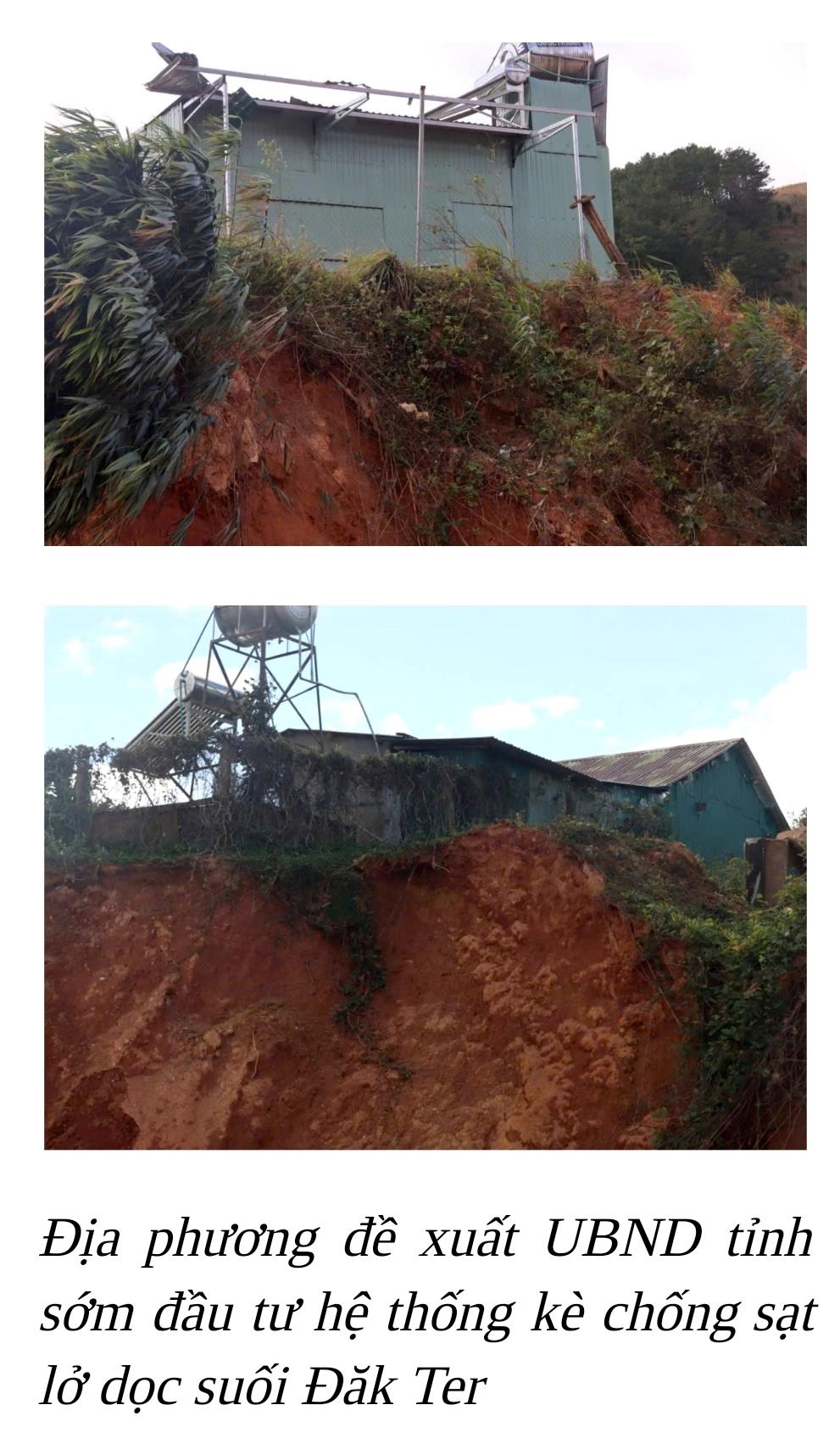 Theo chính quyền xã Tu Mơ Rông, những ngày mưa bão vừa qua khiến khu vực suối Đăk Ter liên tục xảy ra sạt lở. Bờ suối bị nước khoét sâu tạo thành taluy đứng, nhiều điểm sụt lún lớn. Nhiều hộ dân sinh sống sát mép suối hiện đối mặt nguy cơ rất cao khi nền đất đã bị xói hàm ếch, chỉ cần xuất hiện thêm mưa lớn hoặc dòng chảy mạnh là có thể bị cuốn sập.