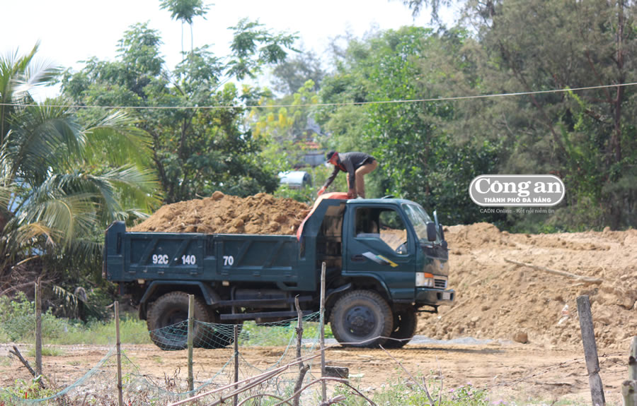 Sáng 14-5, chúng tôi đã đến hiện trường ghi nhận, hoạt động san múc đất ruộng ở đây diễn ra khá tấp nập. Một máy xúc đang hoạt động hết công suất múc từng lớp đất mặt tơi xốp đổ lên các xe tải mang BKS: 92C- 140.70; 92C- 084.05... chở đi. Theo dấu những xe tải này, P.V thấy sau khi "ăn" đầy ắp đất, những chiếc xe tải ì ạch theo đường bê-tông nội đồng "bò" lên đường Nguyễn Sinh Sắc chạy đến cuối đường rồi rẽ trái xuôi theo đường Phạm Như Xương (đều thuộc địa phận P. Điện Ngọc). Điểm đến của những chiếc xe tải này là bãi tập kết đất nằm khuất sau khu dân cư thuộc địa bàn khối phố Tứ Hà (P. Điện Ngọc).