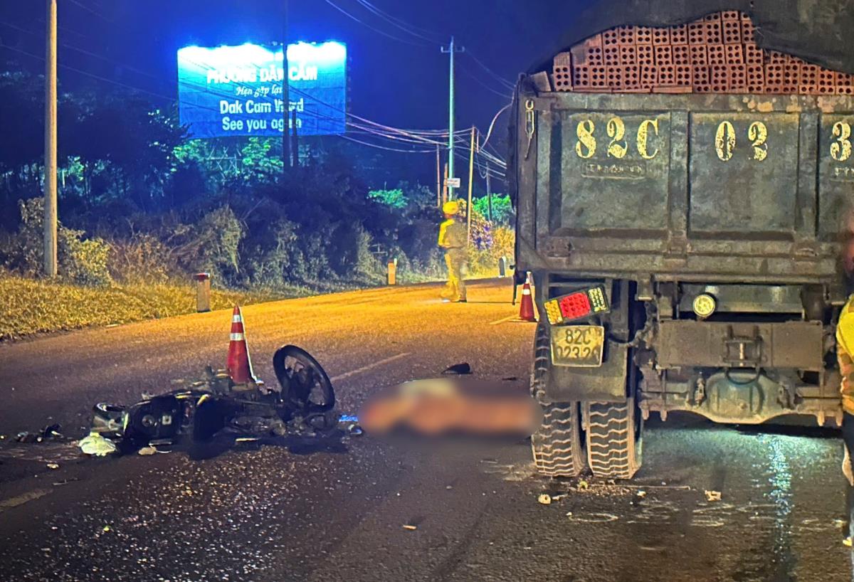 Lúc 18 giờ 20 ngày 15-9, trên đường đi đến rẫy để khai thác mủ cao su, anh A.K (trú phường Đăk Cấm, tỉnh Quảng Ngãi) điều khiển xe máy BKS 38X1-273.xx lưu thông đến đoạn đường Hồ Chí Minh (gần cổng chào phường Đăk Cấm) đã va chạm với xe tải BKS 82C-023.xx.