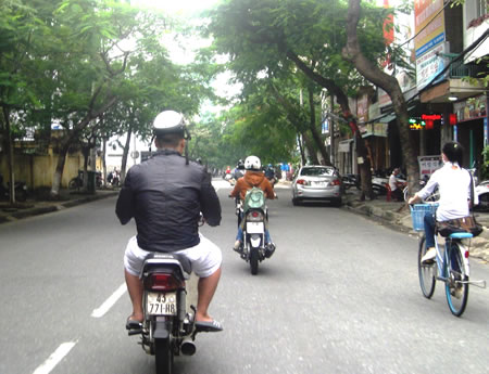 Đội MBH đối phó (không cài quai mũ) thể hiện sự thiếu văn hóa khi tham gia giao thông. |