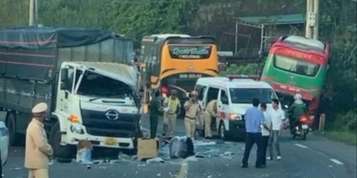 Cùng lúc, xe tải BKS 60H-047.00 do tài xế Phan Xuân Ch. (trú TP Bảo Lộc, Lâm Đồng) điều khiển lưu thông cùng chiều, không kịp xử lý nên tông mạnh và đẩy xe tải BKS 81C-239.11 tông liên hoàn vào sau xe đầu kéo. Hậu quả, tài xế Phan Xuân Ch. tử vong tại chỗ; anh Nguyễn Xuân V. (47 tuổi, đi cùng xe tải BKS: 60H-047.00) và anh Phạm Văn H. (39 tuổi, đi cùng xe tải BKS: 81C-239.11) đều tử vong trên đường đưa đi cấp cứu. Ngoài ra, có 3 người bị thương, gồm: tài xế Lê Huy Hoàng, Trương Hùng Cường (32 tuổi, đi cùng xe tải BKS 81C- 239.11) và Nguyễn Thanh Trung (36 tuổi, đi cùng xe tải BKS: 60H-047.00). Nguyên nhân vụ tai nạn đang được điều tra.
