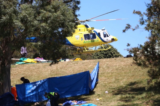 Hiện trường tai nạn gió thổi bay nhà phao ở Australia. Ảnh: ABC