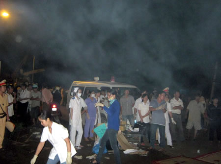 Còn bên trong nhà xác BV Đa khoa tỉnh, từ sáng sớm, các nhà sư đã đến làm lễ cầu siêu cho các nạn nhân. Ngồi cạnh thi thể anh Hoàng Ngọc Thắng (1975, quê H. Kim Sơn, Ninh Bình), chị Lưu Thị Huệ (dì ruột của nạn nhân) nức nở: “Tìm mãi mới nhận dạng được cháu tôi. Thắng đang đi TPHCM để thăm vợ. Tôi đã bảo để tháng sau đi mà nó nhất quyết không nghe”. Được biết, anh Thắng chỉ mới chuyển về H. Ea Kar, Đắc Lắc làm thuê được mấy tháng nay, còn vợ và con thơ đang làm thuê ở TPHCM.
