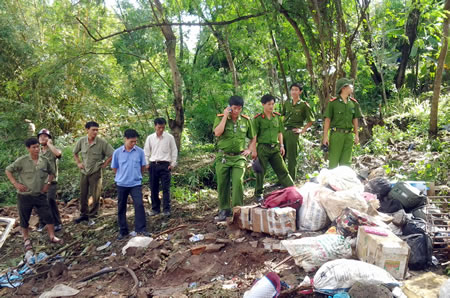 Lực lượng CA bảo vệ tài sản, hành lý của các nạn nhân. |